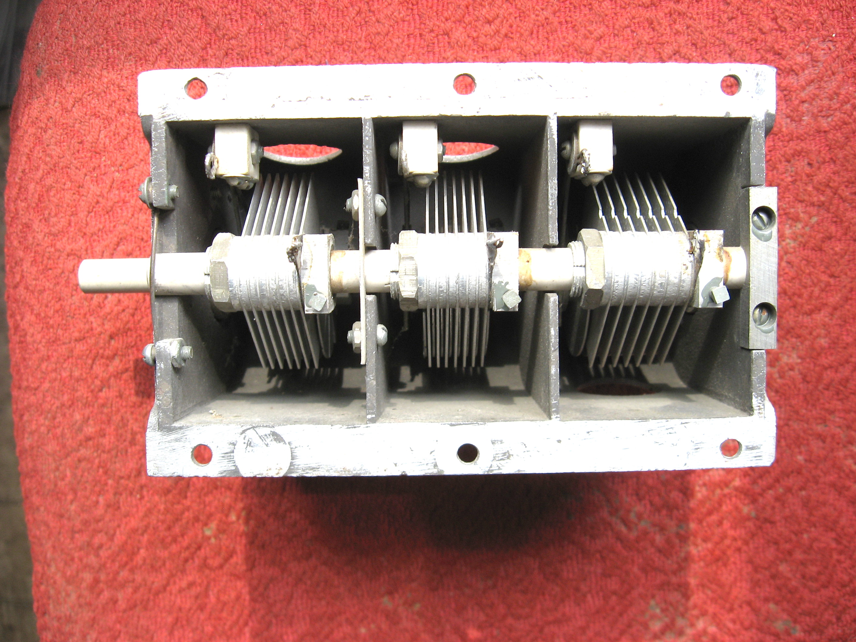 Военное производство. Неподвижные и подвижные пластины изолированы от корпуса. Подвижные пластины размещены на керамической оси. Емкость секций: 5-140 пФ, 5-140 пФ, 3-75 пФ. Размеры 145х85х80(в). Диаметр оси 9, выступает из корпуса на 28. Судя по исполнению, есть возможность разборки и изменения расстояния между пластинами в секциях. 10 руб. 29-5201992, Олег, или в личные сообщения. Упакую и вышлю почтой.