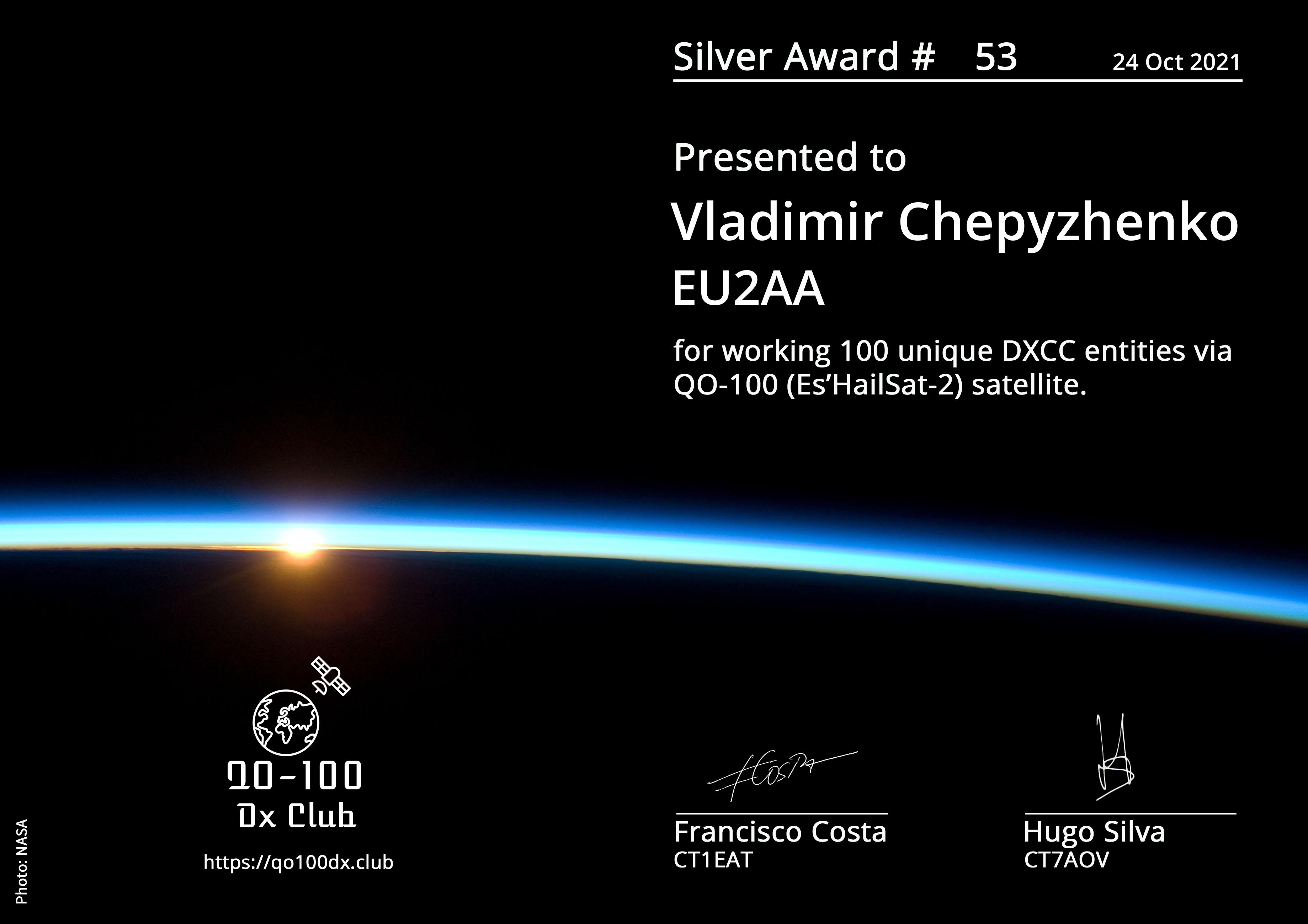 - за 100 стран по списку DXCC - Silver, выдано 40 штук.