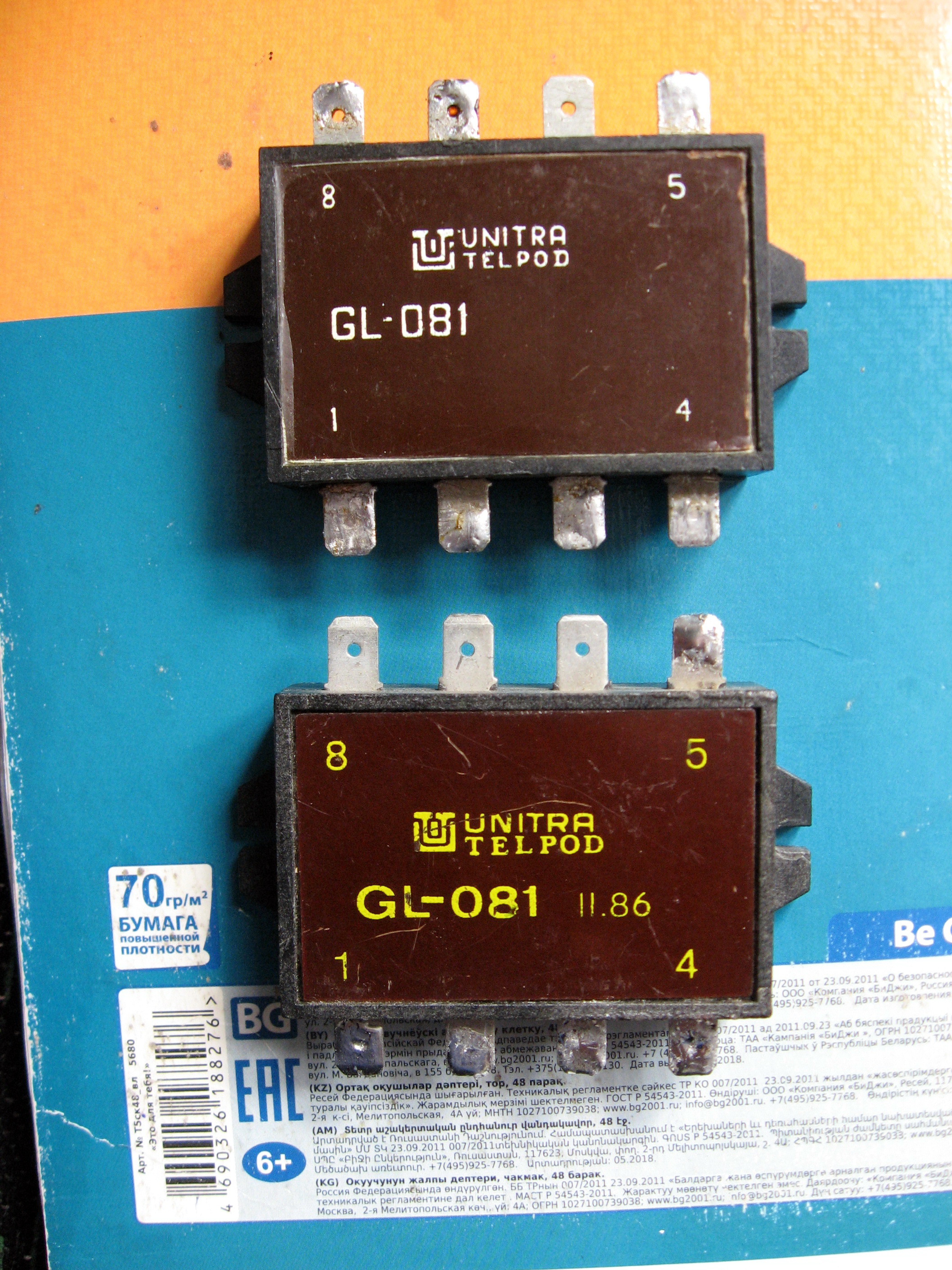 Схема GL-081 представляет собой электронное реле. Схема заключена в пластиковый корпус. Провода выполнены в виде типовых разъемов 6,3 мм.