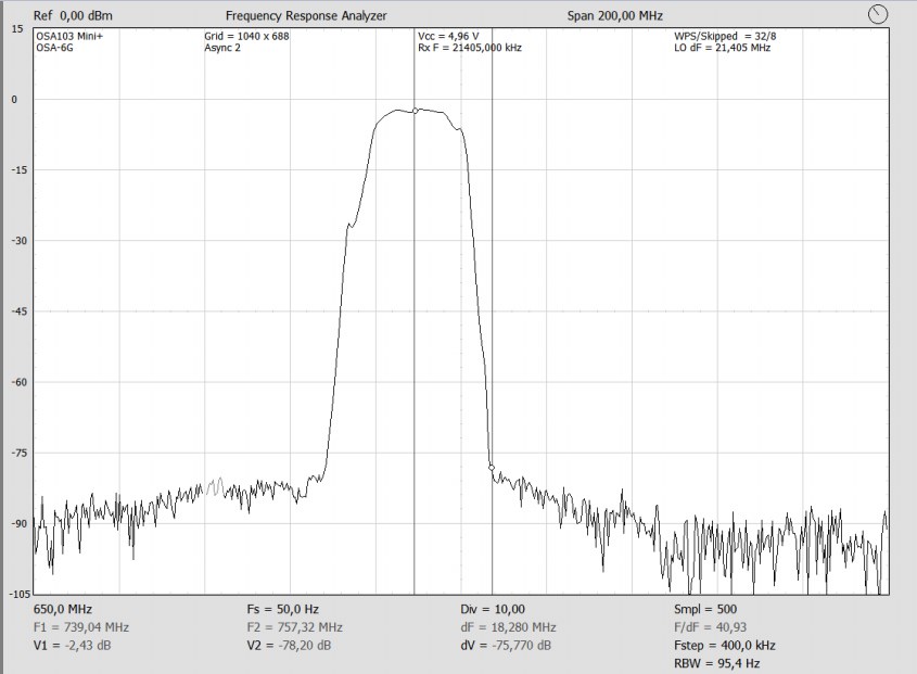 Затухание в полосе задержания (Att) - не хуже 70 дБ