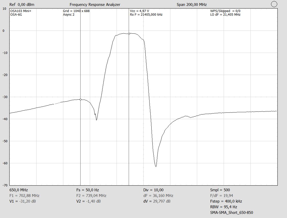 Затухание в полосе задержания (Att) - не хуже 39 дБ