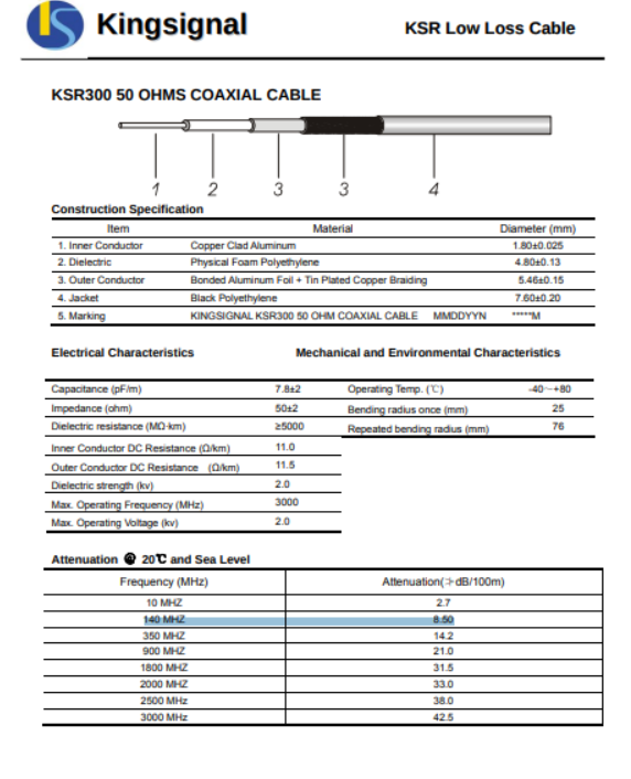 Продам кабель KINGSIGNAL KSR 300, новый ,внешний диаметр 7,6 мм, 50 ом, емкость 7.8 пФ на погонный метр, центральная жила — омедненный алюминий (https://fccid.io/ANATEL/02465-10-06379/ ... 018D14/PDF). Кусок 45 метров, цена 135 рублей. (продается одним куском). По всем вопросам обращаться к Борису (EW8MB) по номеру телефона +375 29 736-93-36.