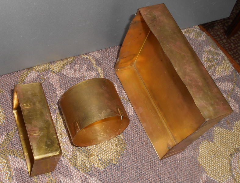 Экраны латунные. Размеры 13х10,5х3 см; 8,3х5,5х2,3 см; ()6,5х4,7 см. Большие по 3 руб, меньшие по 2.