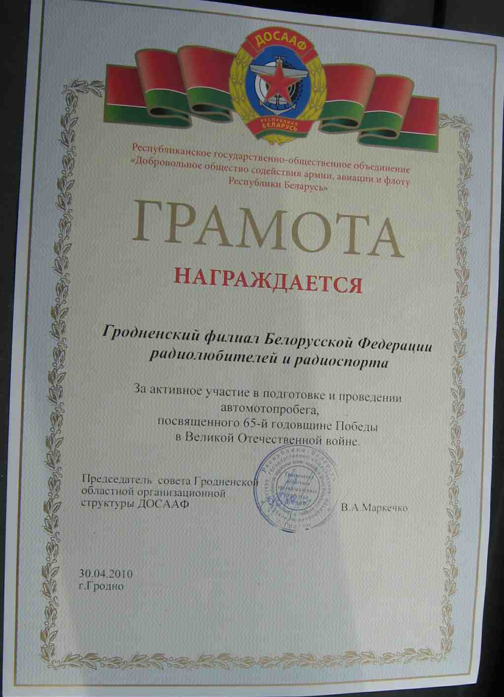 Re: Гродненские радиолюбители в автопробеге к 65-летию Победы