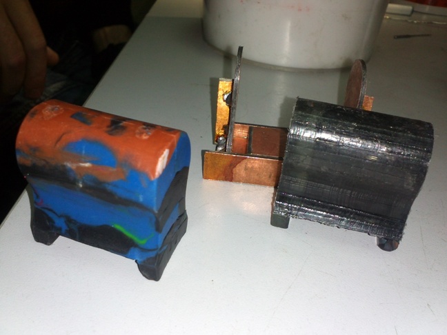 Время застывания силикона около 24 часов, т.к. заливалось в пятницу то дальнейшие действия проводили в понедельник. Разрезали силикон, вынули макеты и приступили ко второй части - отливке креплений