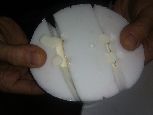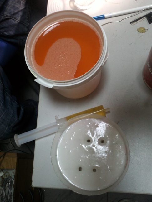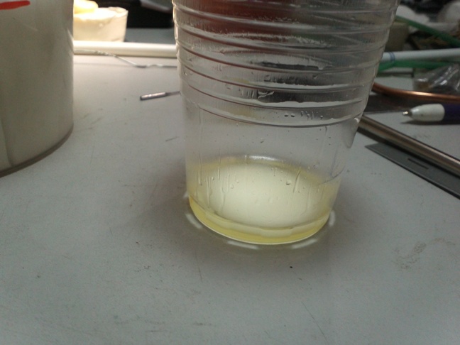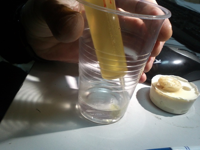 Остатки смолы использовались как контроль полимеризации - смесь нагревается и становиться из янтарной в белый