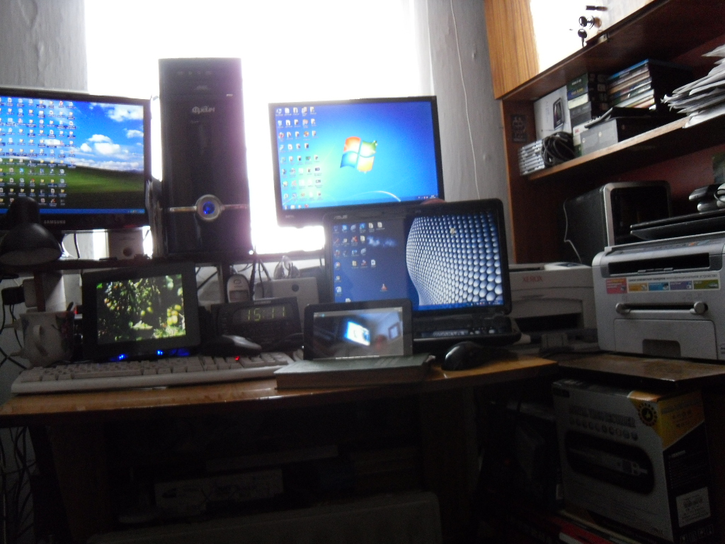 Вот ещё часть фото, моего кабинета. Тут моя информационная аппаратура. Тут и большие компы и ноутбуки и даже планшетники. Решил себе ни в чем не отказывать. Да и принтеры не помешают.