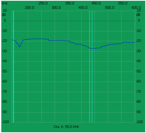 Показометр станции ничего не показал на 145.500, а на 433.500 появилась первая "ступенька" на мощности 1 ватт