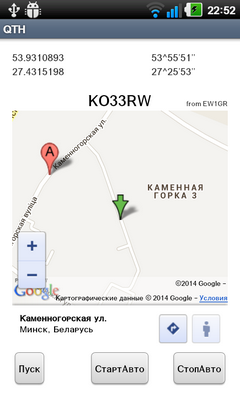определение QTH-локатора по данным навигатора телефона (GPS или с использованием вышек сотовой связи) и отображение на карте гугла текущего местоположения (если интернета нету то это не мешает, карта будет пустая)