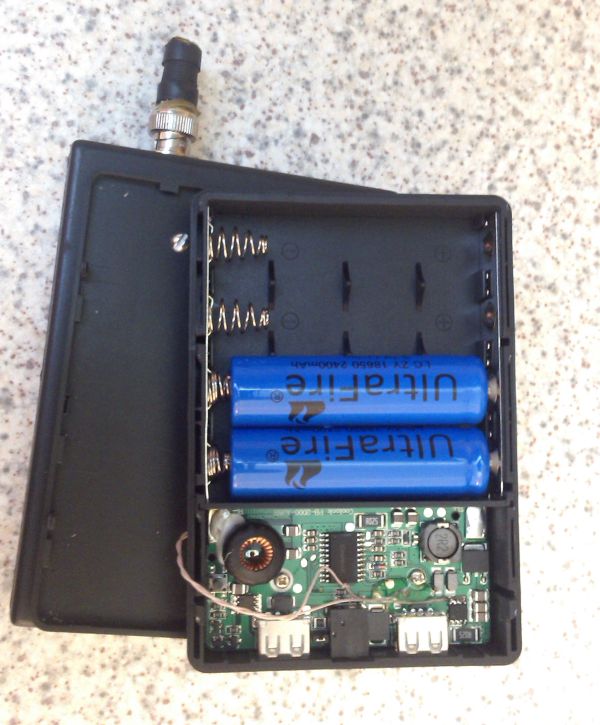 Прикрученный сзади power bank можно легко снять, он на защёлках. Можно было и 4 аккумулятора использовать, но и двух хватает на несколько часов непрерывной работы прибора.