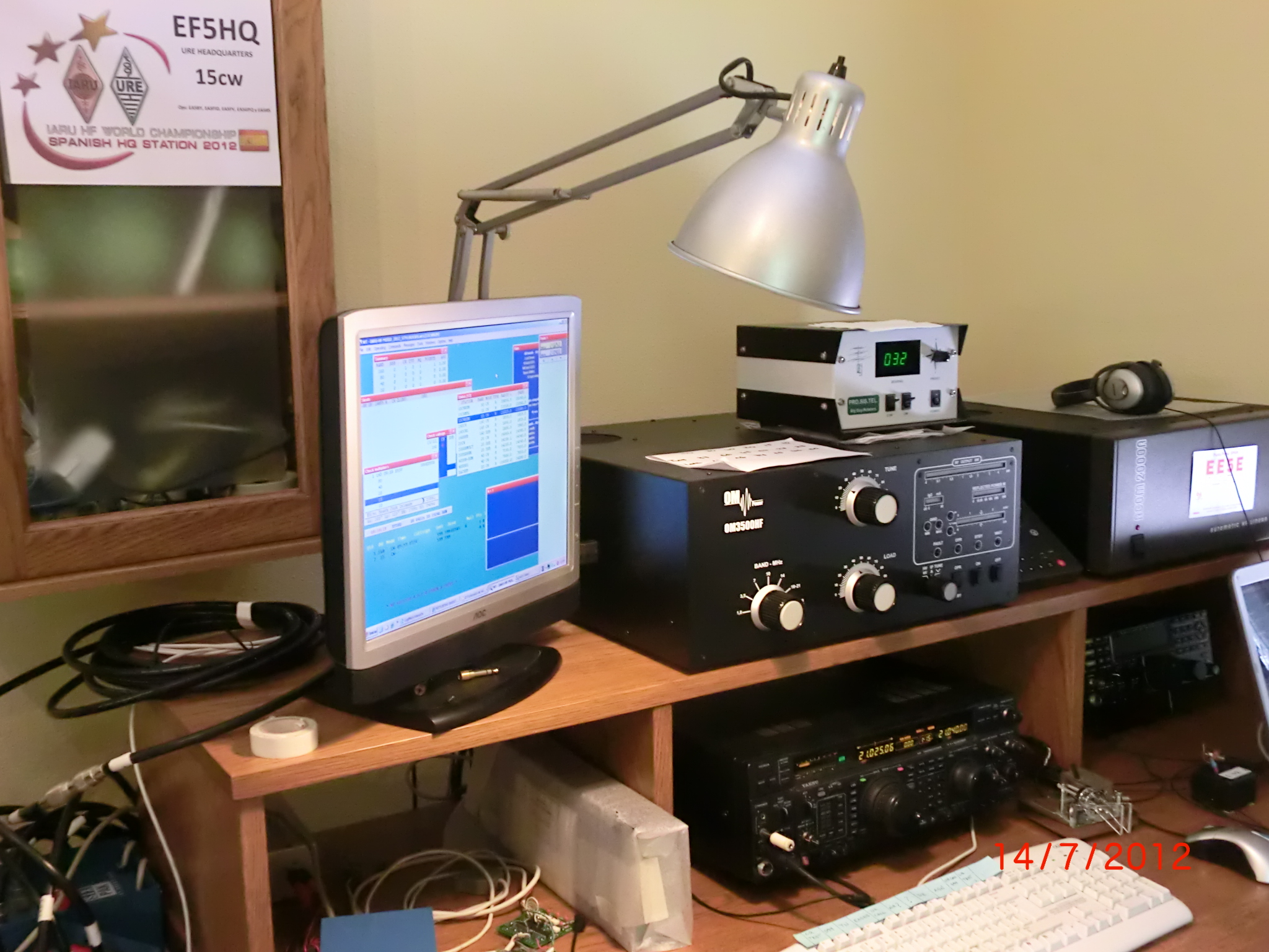 Интересные соревнования. Всякий раз стараюсь не пропускать. Вот и в этот раз за пару недель до начала ,договорился с Хуаном EA5RS, использовать его станцию. Получил разрешение на короткий контесткол EF5Y и в свободное от работы время начал готовить станцию под себя. Решил участвовать в подгруппе MIX HP. Обычно мы используем эту станцию в категории M/S. Поставил FT1000MP вместе с K3 + OM Power на один стол. Раскинул противовесы 160m: 35m shunt fed tower по земле прямо по тротуарам, благо район сейчас пустой, не сезон, а вот с проволочной GP на 80 м пришлось повозиться. И всё равно получилась очень узкополосной. КСВ 2 на 3550, минимум 1,4 на 3,61 и 2 на 3,7. Да и противовесов всего 4 два из которых резонансных висящих прямо над крышей домика. На 40м стоит поворотная 2 ele shortened Optibeam @ 25m и на том же самом редукторе 20/15/10: Optibeam OB-11-3 @ 28m. Ниже не поворотная 15m: 5 el yagi @ 17m строго на USA. Есть приёмная K9AY на 160/80 м которая часто спасает от атмосферных помех. Долгое время я использовал Win-Test программу, она платная ,но очень стабильная, а незадолго до начала теста вдруг решил восстановить давнишнюю N1MM с апдейтом на двух компьютерах в общей сети. Так удобнее и проще , разделять каждое радио со своим компом и своим монитором. Записал макросы. Провёл на 100 ваттах несколько контрольных QSO с разных радио и со спокойной совестью поехал домой отоспаться до начала контеста, по дороге заскочив в гастрономом за небольшим запасом еды на предстоящие 24 часа марафона .....