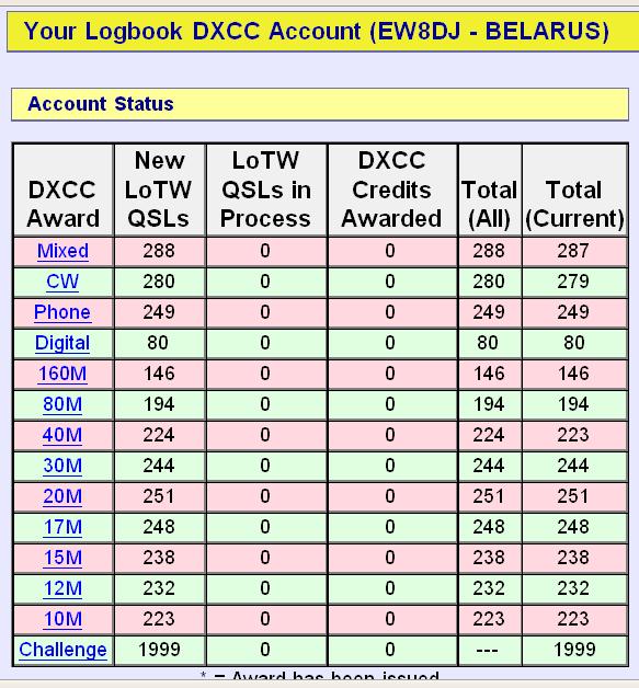 Насколько я вижу - заявки на DXCC CHALLENGE пока нет...ew1do писал(а):Challenge 1999, момент истины от EW8DJ