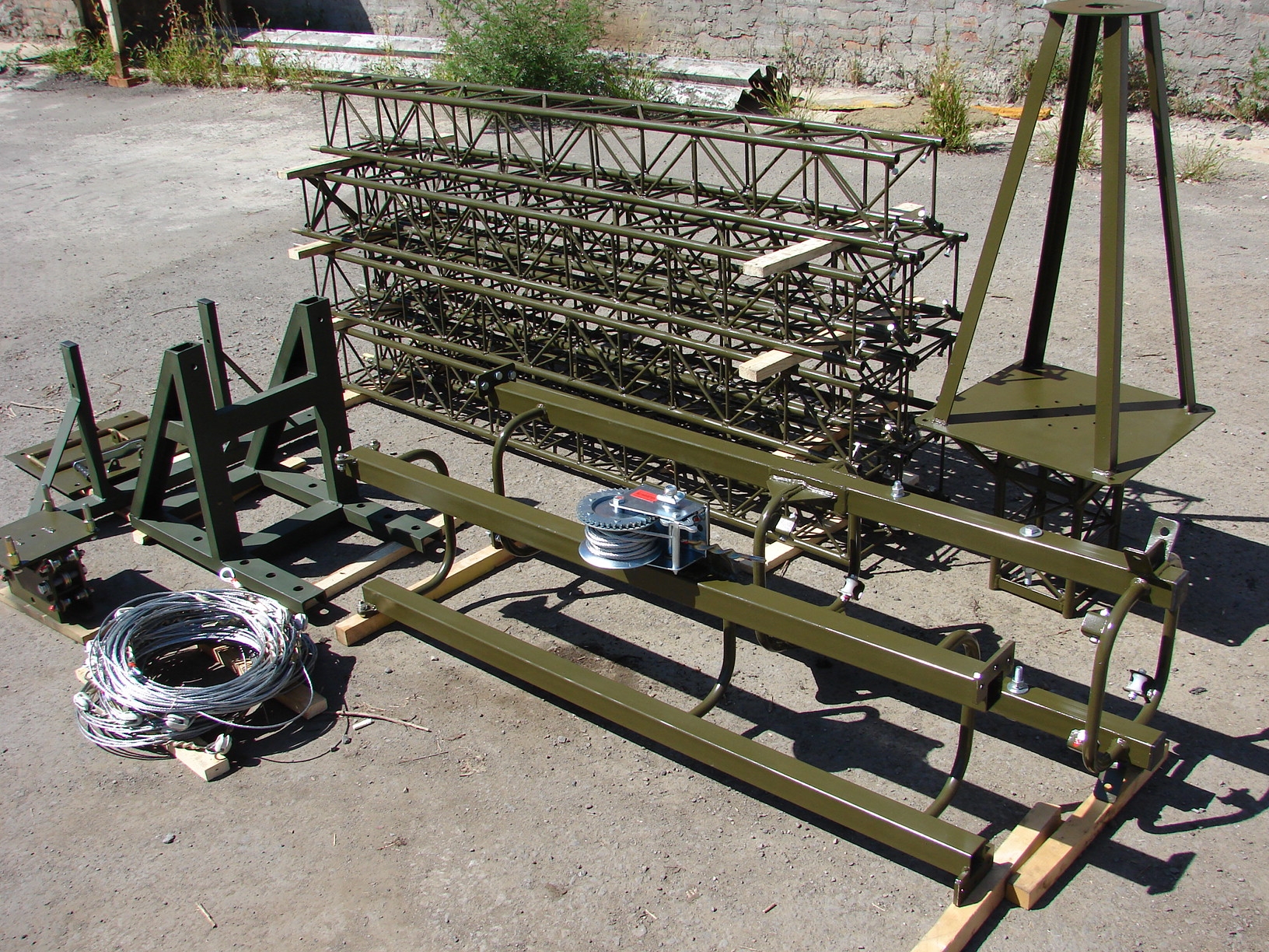 Станок +5 секций , секция для поворотного устройства( оттяжки станка в подарок ) - высота 10,7 м - 33 т.р. Такелаж отдельно . Оттяжки с изоляторами , если нужно , тоже изготавливаем .