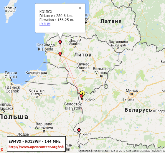Сегодня в EWAC сработал с EU1RC, локатор KO33tz.