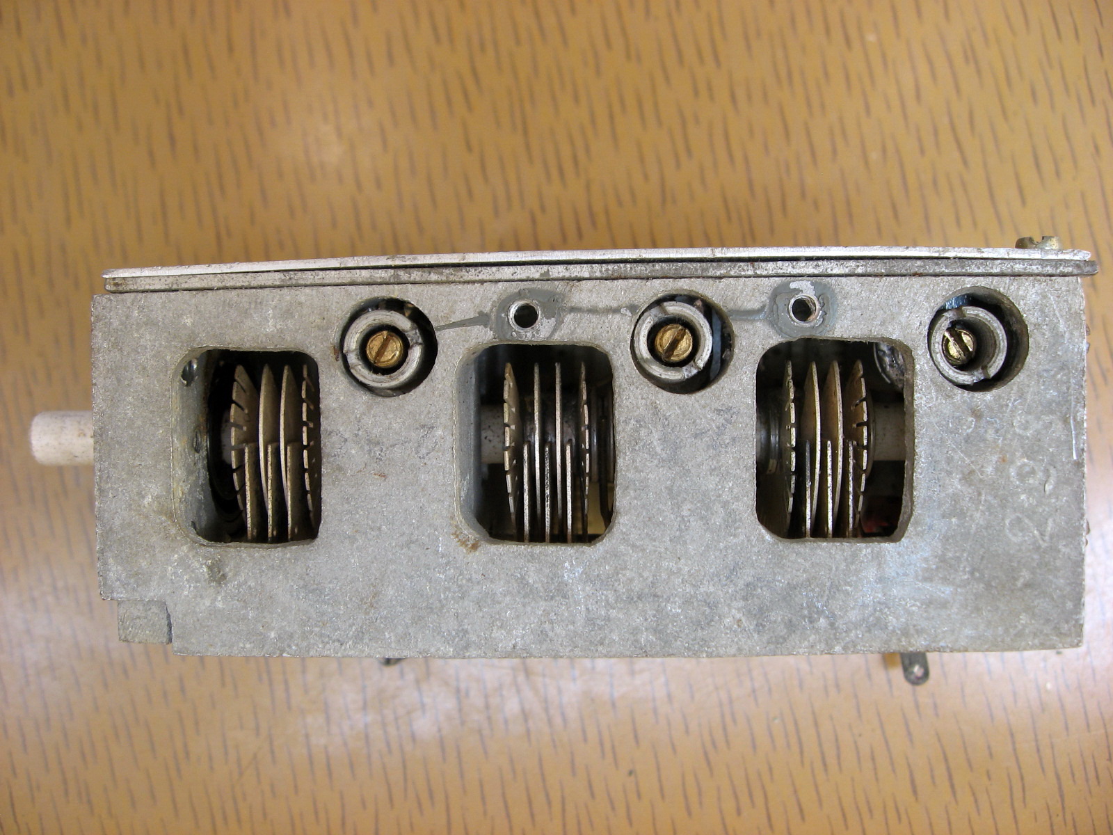 Размеры по корпусу: 103х68х42 мм, ось переменного конденсатора керамика диаметр 7 мм, выступает из корпуса на 16 мм. Индуктивности трех катушек по 0,45 мкГ, емкости трех секций переменного конденсатора по 3 - 26 пФ, зазор 1 мм, емкости трех подстроечных конденсаторов по 2 - 4,8 пФ. Возможно применение в качестве перестраиваемого ФСС или для согласования GP. Высылка по Беларуси. Заинтересованным писать в личку.