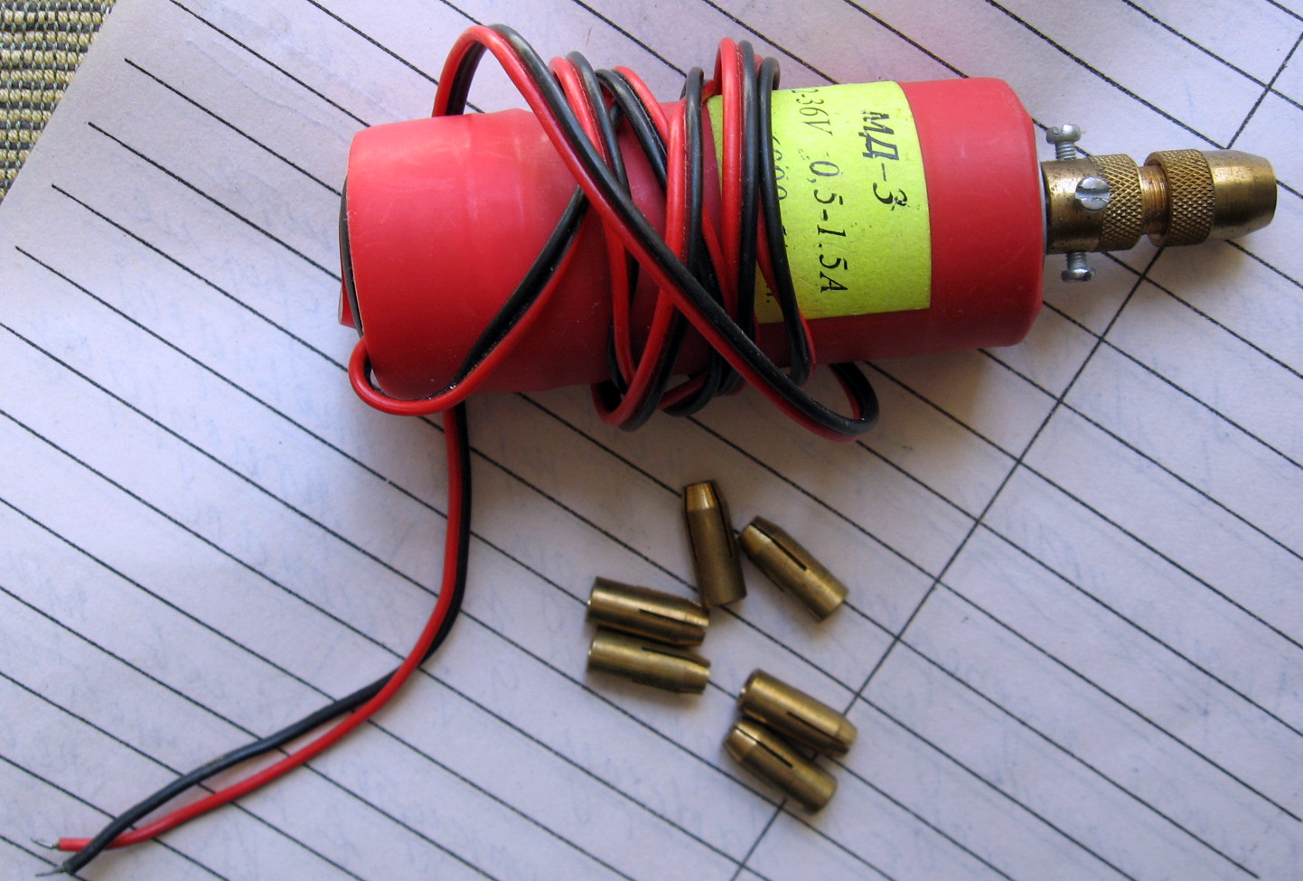 Минидрель с набором сменных зажимных цанг. Не подошла, т.к. от 12 вольт мощность движка для сверления плат недостаточна, а делать выпрямитель на большее напряжение лень. Вышлю почтой наложенным платежом. 10 руб. (29)5201992 или пишите в личку. Олег.