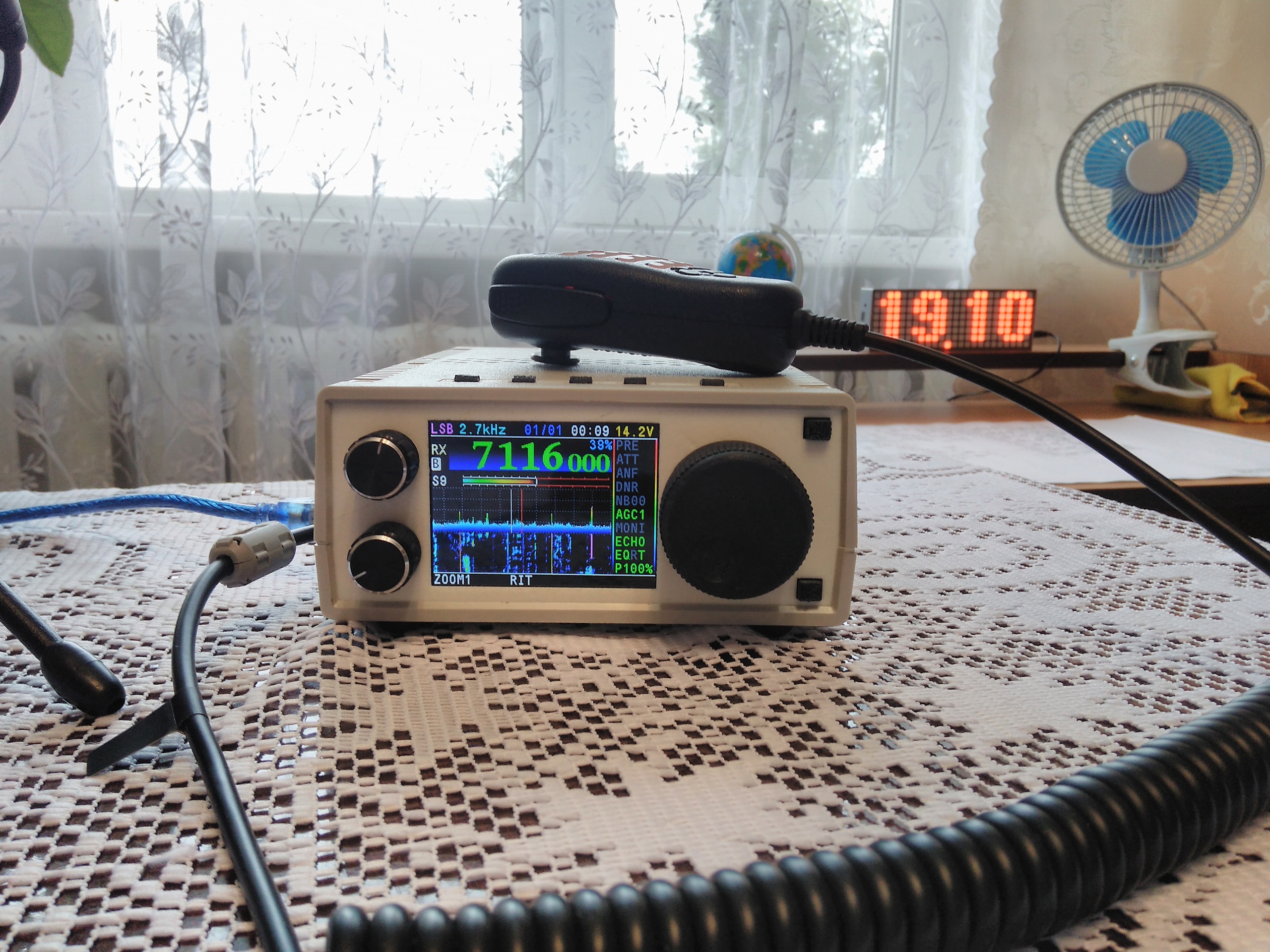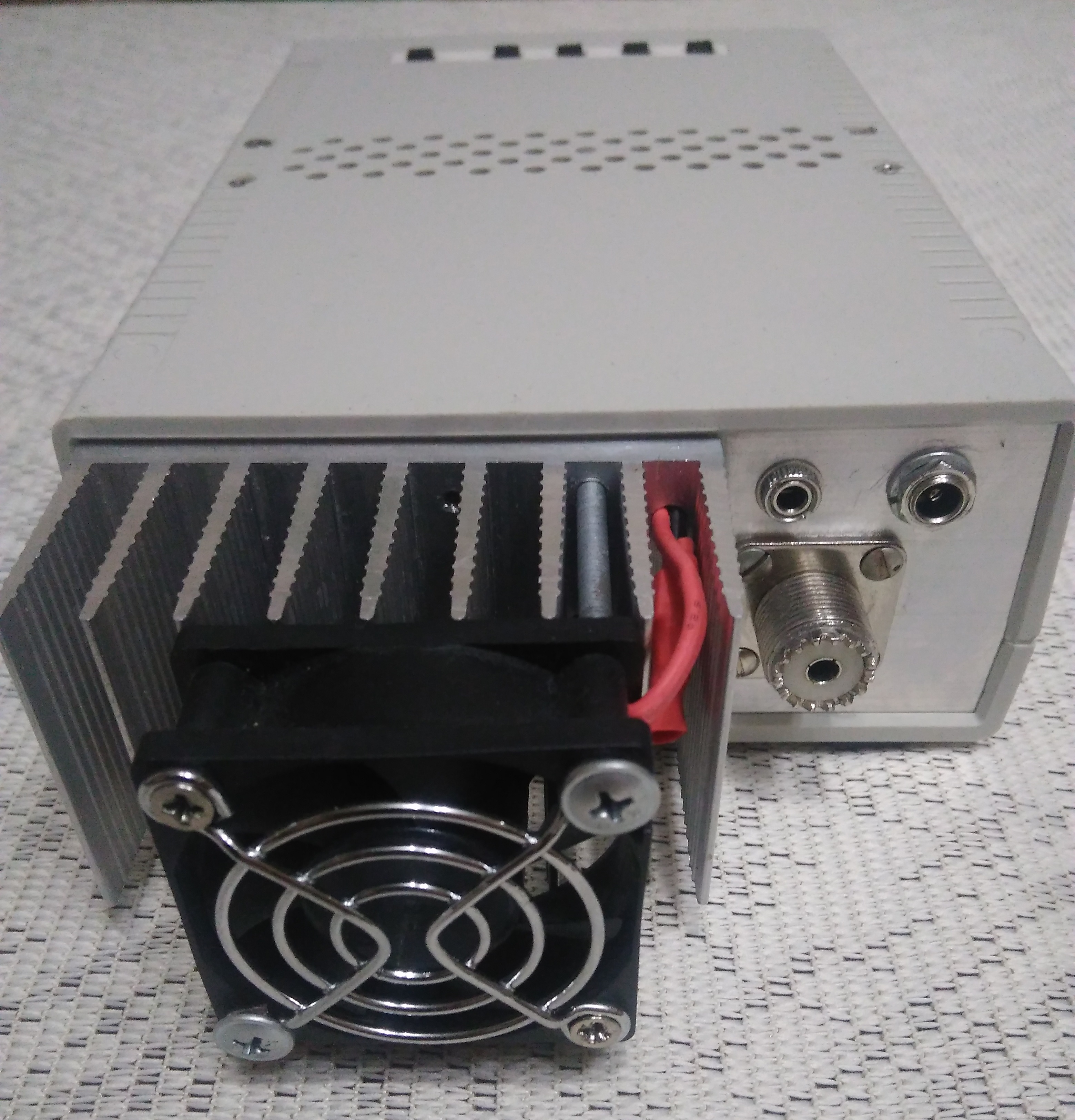 Выходная мощность при питании 13,8В на всех диапазонах 15Вт. Стоит дополнительный обдув, так как работал в цифре, провёл на этом трансивере около 3 тыс. связей. Версия платы 1,2 нужные модификации добавил.